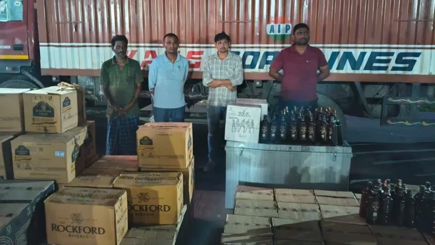 Authorities conducted a coordinated operation near Misamari Railway Station after receiving specific intelligence inputs. During the operation, officials intercepted a vehicle carrying a large consignment of liquor.