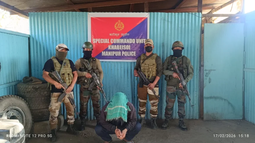 In a major counter-insurgency operation, security forces arrested two active members of the banned People’s Liberation Army (PLA) and recovered a cache of sophisticated arms and explosives. The coordinated operations were carried out across Imphal East district and Imphal West district on February 17, 2026.
